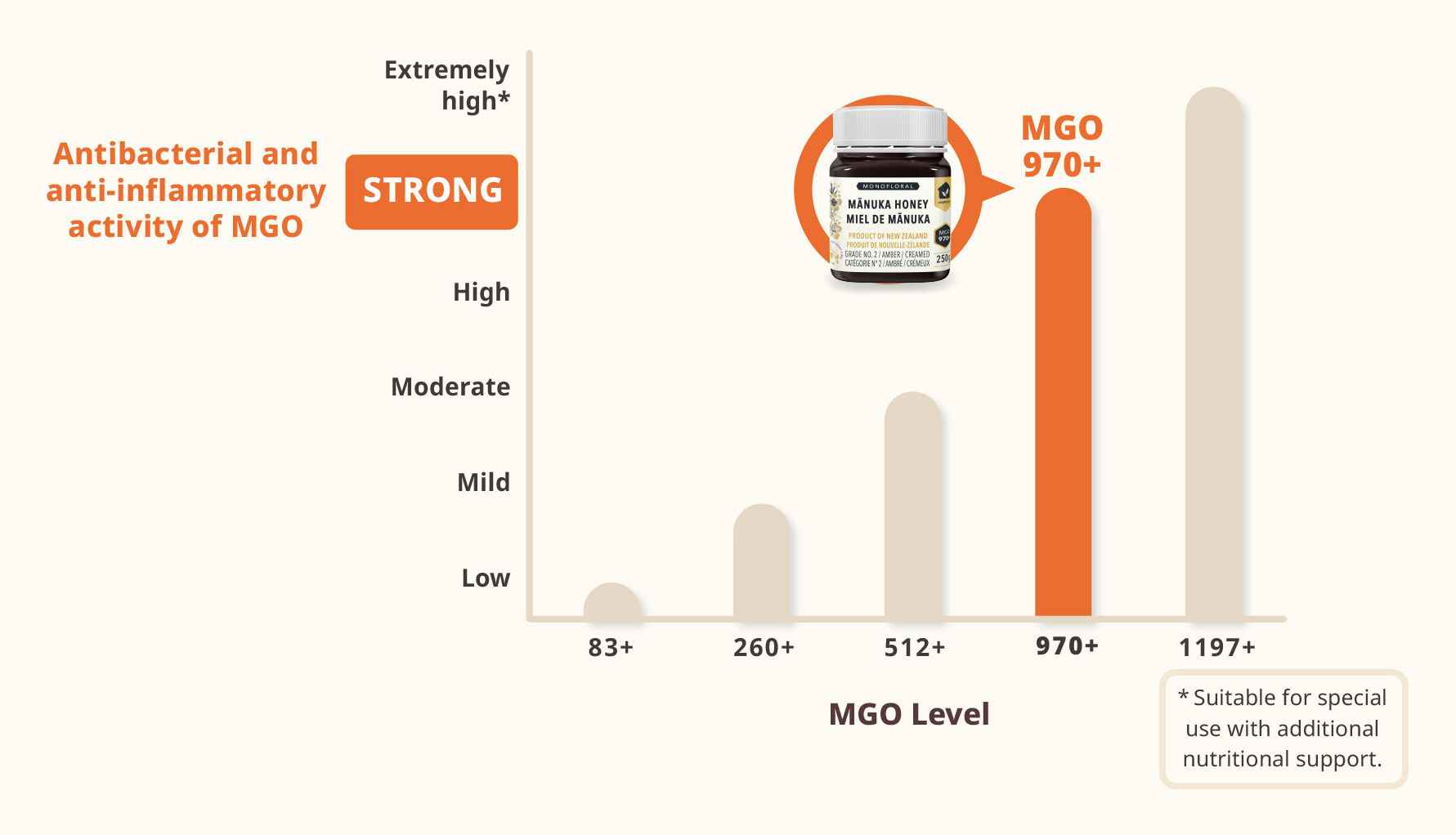 The MGO Level of Vitahouse™ Mānuka Honey MGO 970+